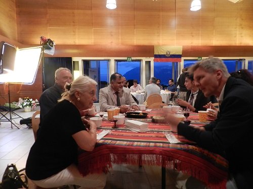 Après le discours d’ouverture de Mr Hannart, il s’en est suivi celui de l’Ambassadeur de l’Equateur en Suisse, Mr José Delgado Mendoza. Sa prise de parole était instructive et motivante. Il dépeint à merveille les paysages et les possibilités de voyage en Equateur grâce à Voyages de Rêve. Il salue cette très belle initiative et soutient les projets de la fondatrice. Ensuite les témoignages poignants des anciens voyageurs, Corinne Blanc et Eric Dupont ont attisé la curiosité des personnes. Les autres invités pouvaient lire sur leurs visages que ce séjour les avait beaucoup marqués. Nous avons même eu droit aux belles anecdotes d’Eric !