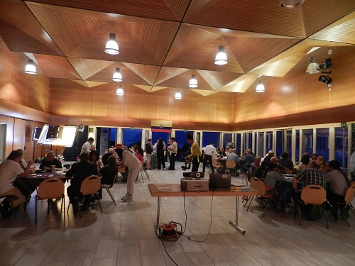 Entre les discussions qui battent leur plein, les apéritifs servis, l’animateur Martin Hannart a dû se tenir sur une chaise, en hauteur afin d’attirer l’attention. Chose réussie ! En live sur Facebook, son discours d’ouverture présente les valeurs, la beauté et la diversité de l’Equateur mais aussi l’importance de cette soirée pour la fondatrice Elizabeth Rojas Gilliand.